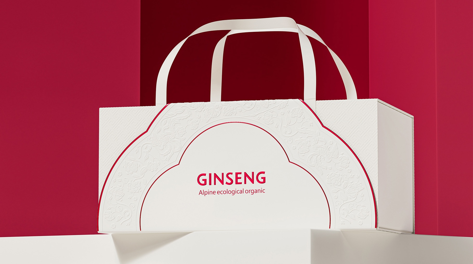 GINSENG(人参)高端人参养生茶整体产品设计风格简约、现代,以东方美学的传统纹样进行压印,从而展现产品的质感及高端雅致的调性。