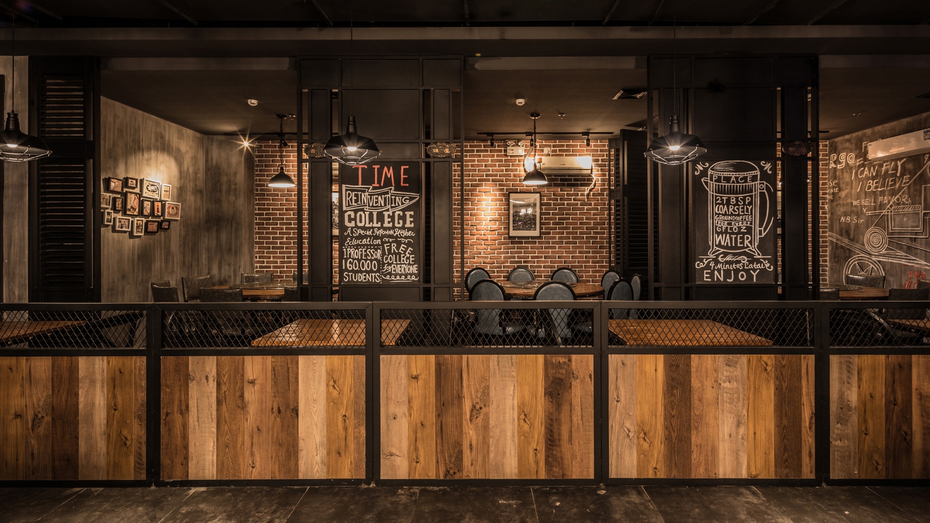 谈起老上海,印象里是一座璀璨奢华的城市,一群怀着满腔热血的年轻人追着梦,还有那曼妙身姿的歌女,一首卡门,便足以让人沉迷。而设计师通过什么手段,才能让新上海与旧上海在我们脑海里重逢呢?设计师对这个590平米的餐厅设计,不仅是带有怀旧工业风为设计元素,且融合了老上海的历史背景,让食客走进上海的老时光里,感受旧上海的繁华与风霜,缔造出令人一再回味的美好体验。 走入店内,一股扑面而来的历史感油然而生,映入眼帘的是最具有老上海风情的彩色玻璃,透过温黄的灯光,带给食客们安心而惬意的舒适感,使人可以暂忘了烦忧,专注的享受美食之旅。而店内装饰,则采用了带有上世纪老上海气息的小铁窗,窗花等,还原了古色古香的上海风格,蕴含上海最纯粹的文化和传统。 坐下来,喝上一杯茶,透过老式的铁窗,望向红砖墙上的照片,仿佛置身于老上海,那是一个在窄窄的弄堂里追赶长大的童年,那是一个晒满衣服飘荡着肥皂味的夏季,那是一个左邻右里互相串门分享家常菜的夜晚。 独具匠心的设计,把上海传统文化与现代工业风,通过新与旧的融合,展现了一个复古而充满魅力的上海,而铁丝网,黑板手绘,做旧的红砖等重工业风元素时时述说着老上海的风情,仿佛过去的模样一一展现在眼前,设计师就是想给你创造一个这样的旧上海的精致生活。
