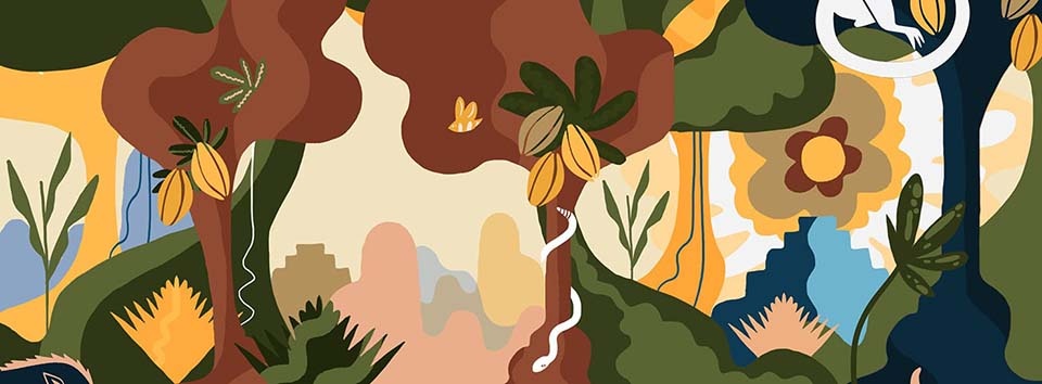 来自墨西哥的可可是食物,是玛雅人民的偶数货币的宗教象征,不幸的是,每年有数百个可可产量的公顷从兰卡东丛林中消失。 La Rifa不仅是对这颗种子的拯救,也是将它再次放在地图上的媒介。 茂密的丛林用简单但非常变色的图形表达,该地区的特有物种共存,为可可树生长强壮和健壮创造了理想的生态系统。
