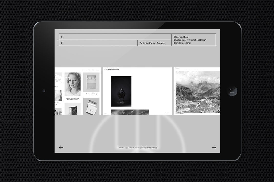 一个响应的标题,其中包含关键的联系人详细信息,据说是品牌标志的延伸,一个具有反转'R'和'B'的会标。就像支撑Roger Burkhard工作特征的精确系统的代码线一样,品牌识别旨在找到形式和功能的引人注目的交叉点。响应式网格响应系统,以及响应式标题,水平延伸以适应格式,并在整个过程中建立美学和有用的连续性。这并不罕见,但在不同寻常的材料中应用具有交流的广度和视觉区别。